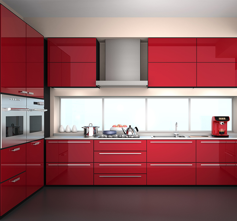 UV lacquered melamine faced MDF and particleboard is produced by applying adhesive and lacquer on the surface of melamine faced MDF or particleboard. It has decorative, mirror-bright and glass-like surface. Lacquered surfaces are more resistant to scratches and abrasion compared to other glossy surface boards. Glossy surface is also resistant to fading and house chemicals. It’s a premium product associated with chicness and quality in furniture industry.